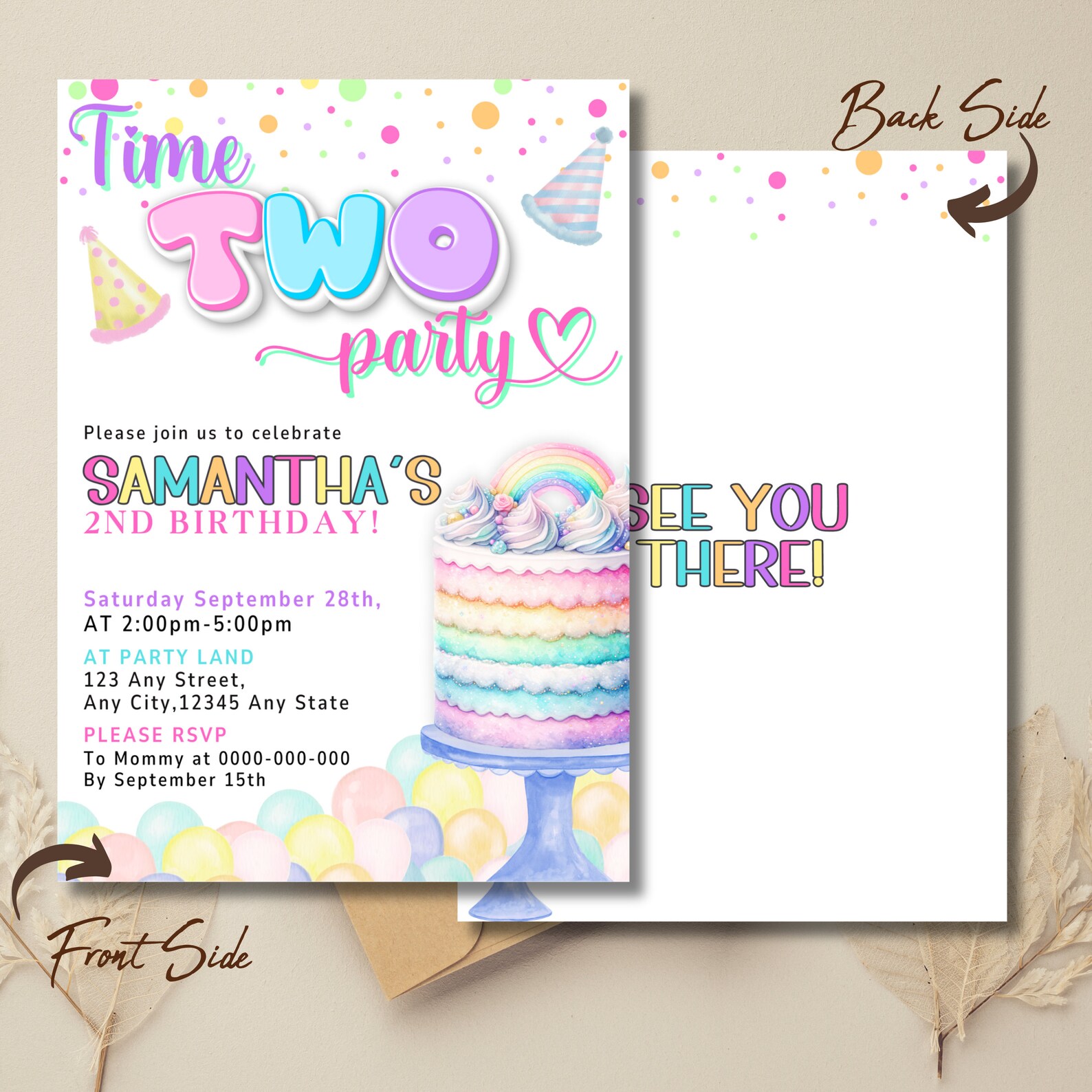 Time TWO Party BIRTHDAY INVITATION, Editable Confetti 2nd Birthday ...