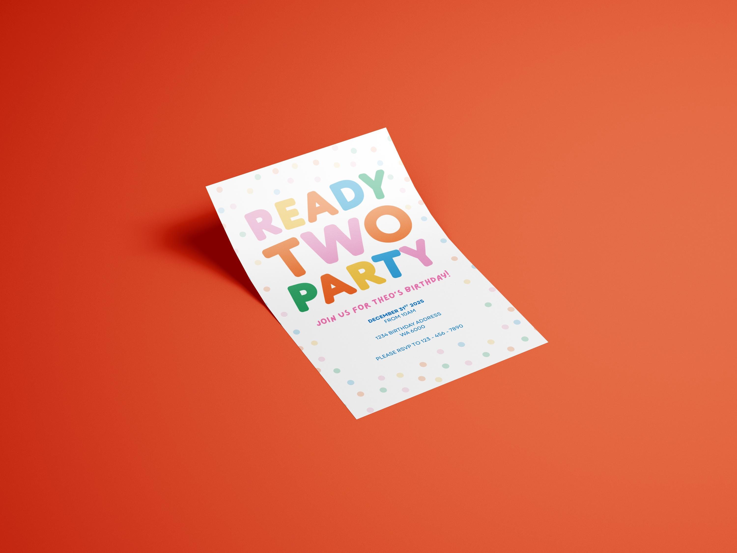 Colourful 'ready TWO Party' 2nd Birthday Invitation – Editable Template ...