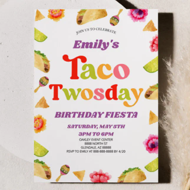 Taco Twosday 2nd Birthday Invitation | Zazzle
