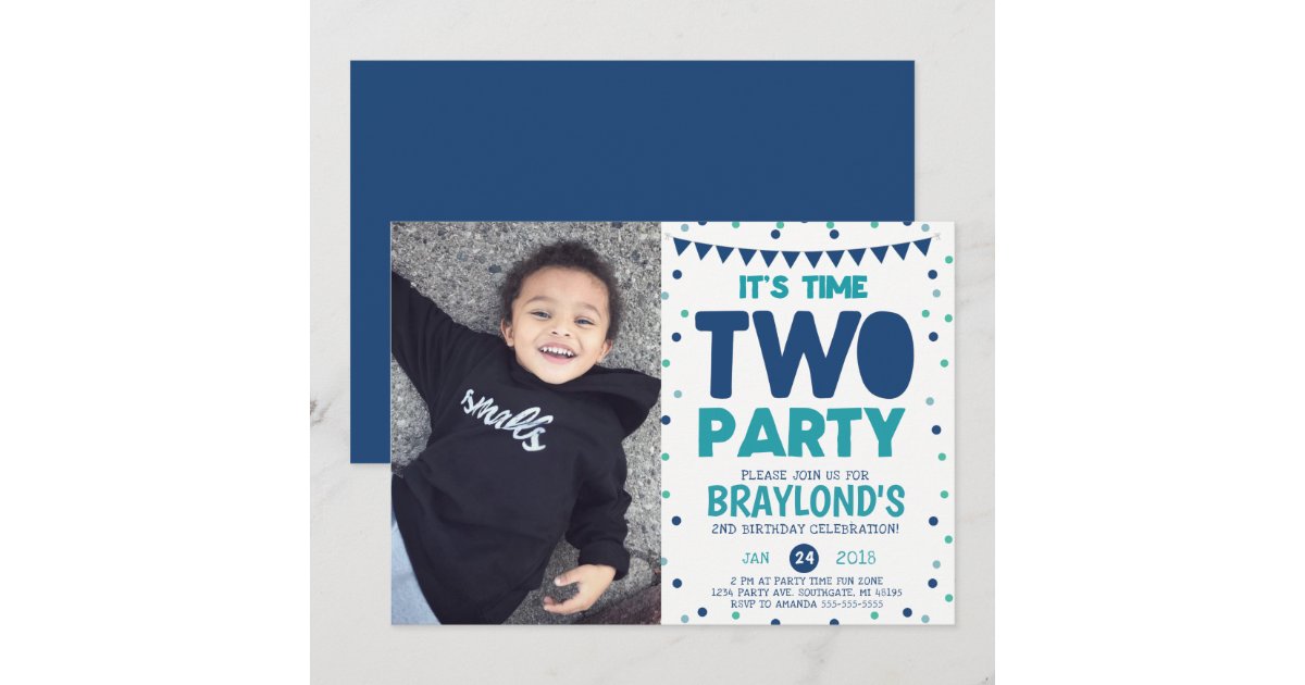 Time Two Party 2nd Birthday Invitation | Zazzle