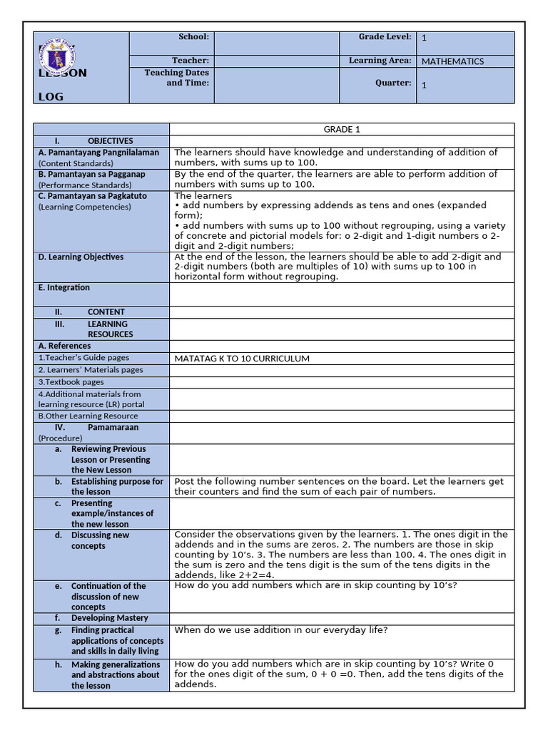 Grade 1 Two-Digit Addition Lesson Plan | PDF | Lesson Plan | Pedagogy