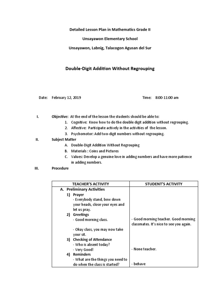 A Detailed Lesson Plan Addition | PDF
