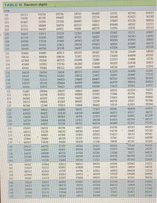 Solved: Use The Random Digits Table, Starting At Line 115,... | Chegg.com