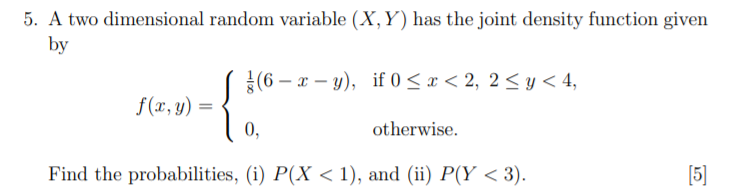 Solved 5. A two dimensional random variable (X,Y) has the | Chegg.com