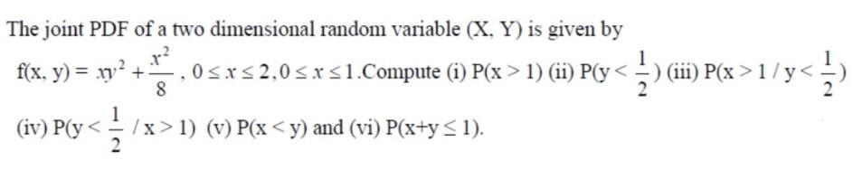 Solved Let (x,Y) be a two-dimensional random variable | Chegg.com