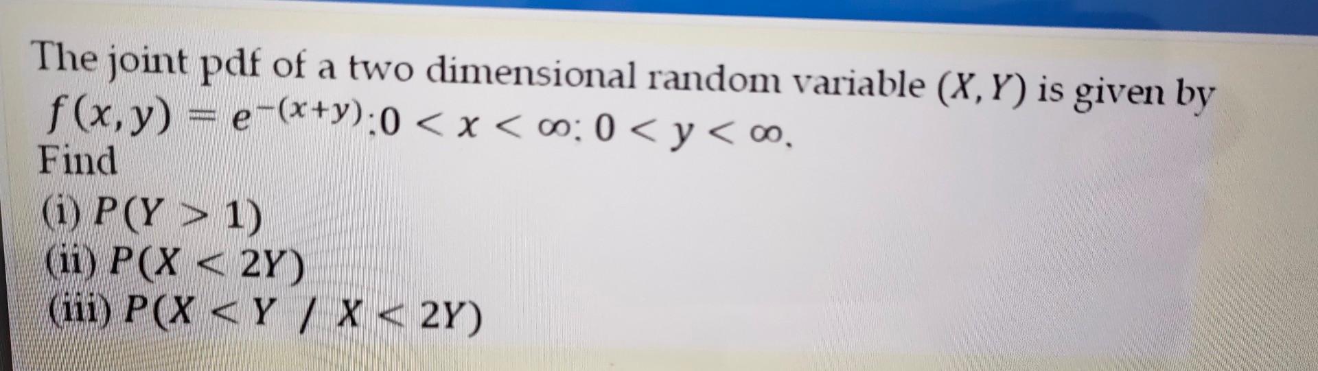 Solved Two dimensional random variable y have the joint pdf | Chegg.com