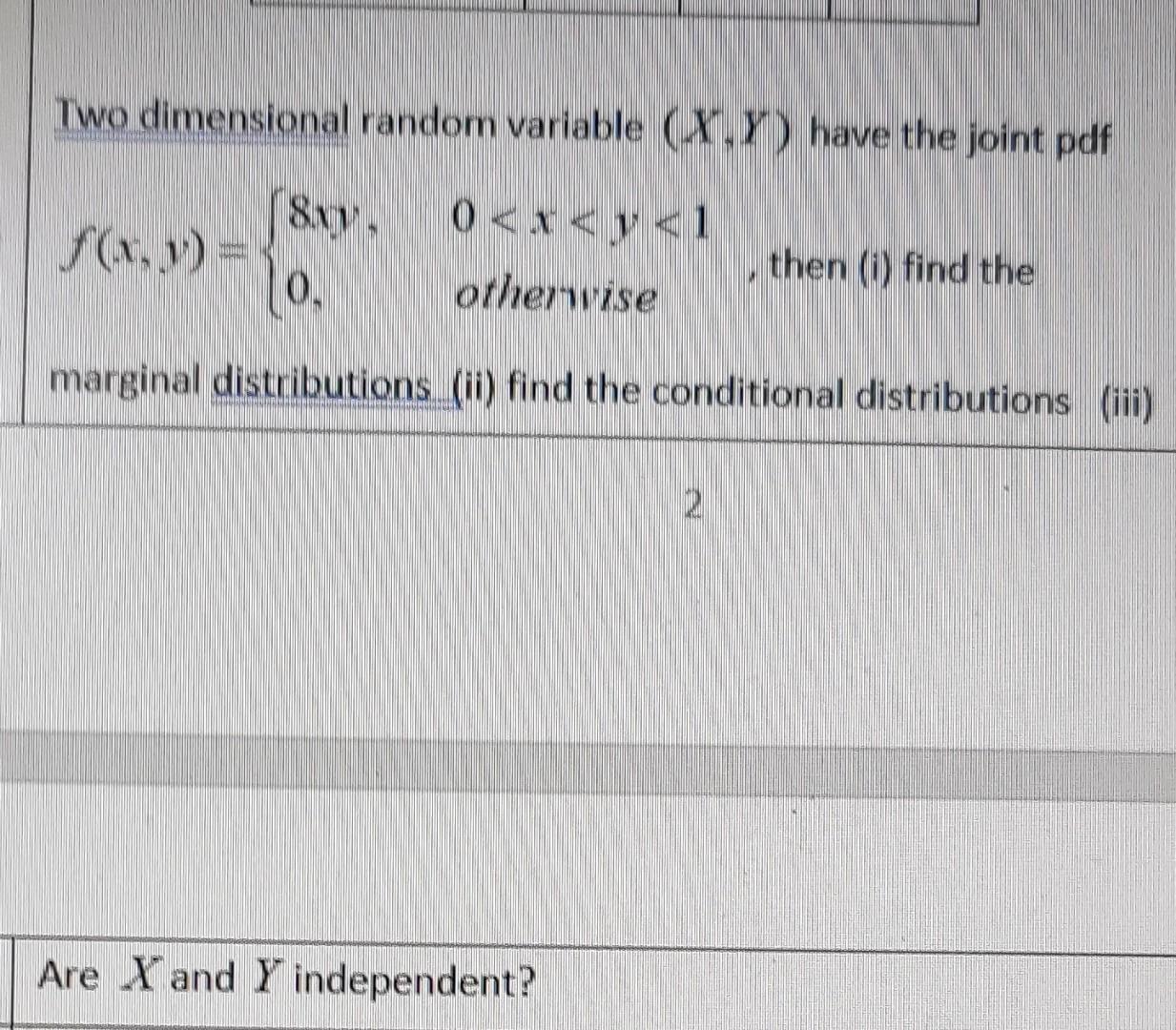 Solved Two dimensional random variable (X, Y) has the joint | Chegg.com