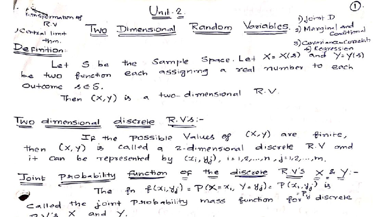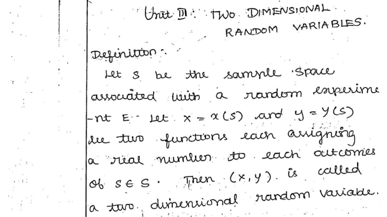 Unit 3: Two-Dimensional Random Variables - Definitions & Examples - Studocu