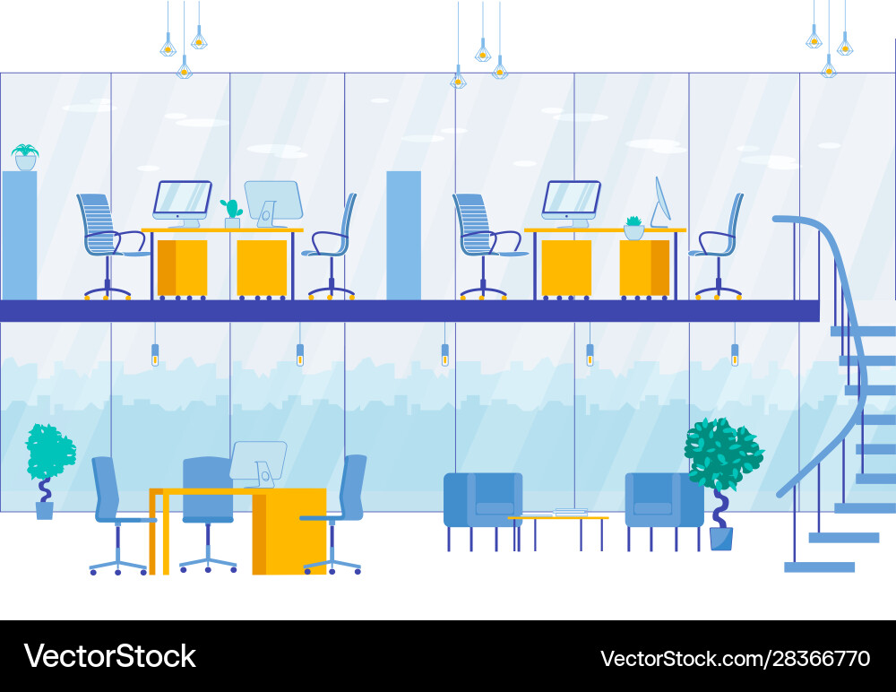 Two level office interior modern business center Vector Image