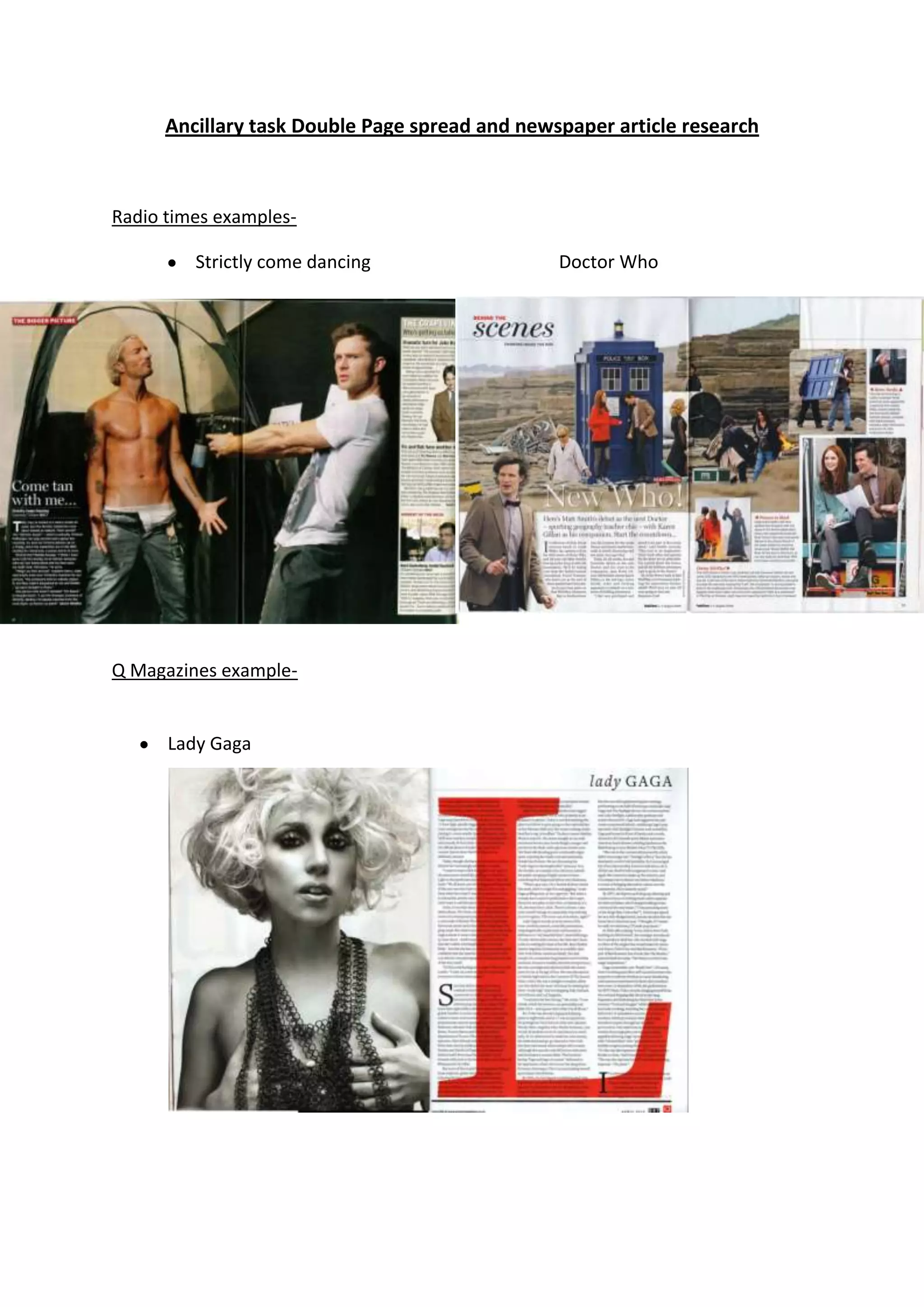 Double page spread and newspaper article research | DOCX