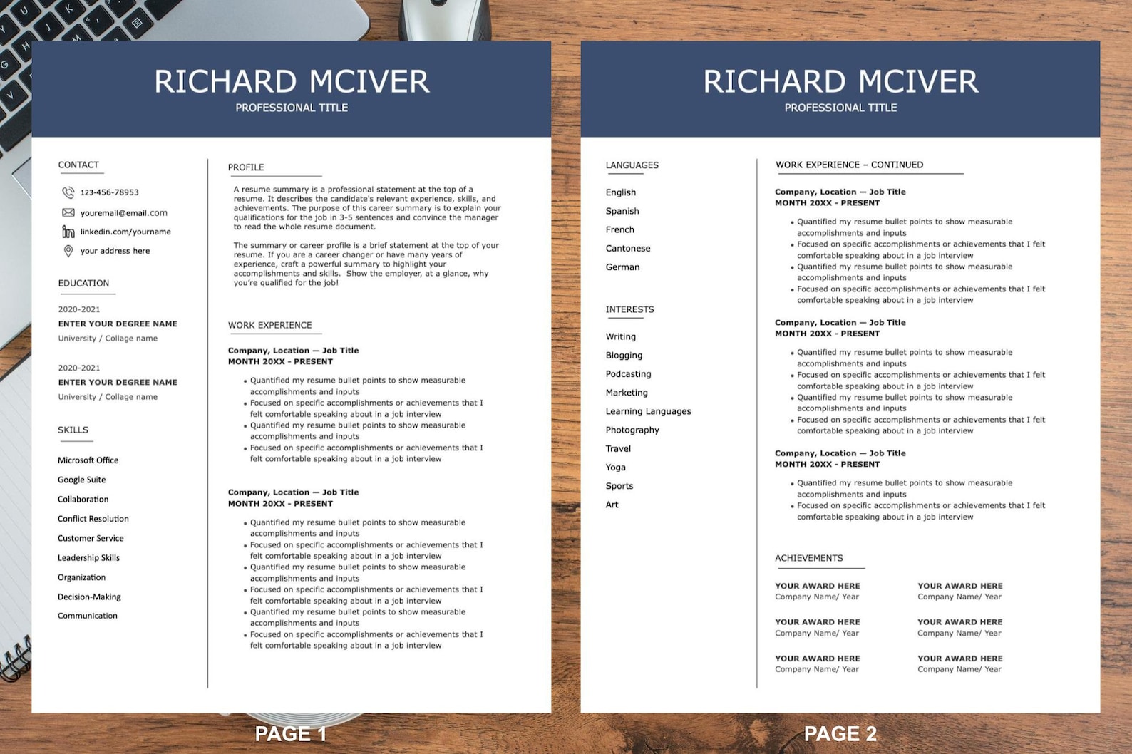 2 Page Resume Template