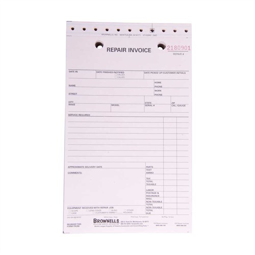 BROWNELLS Repair Invoice 2-Part Forms 500 Pack SKU: 084188500