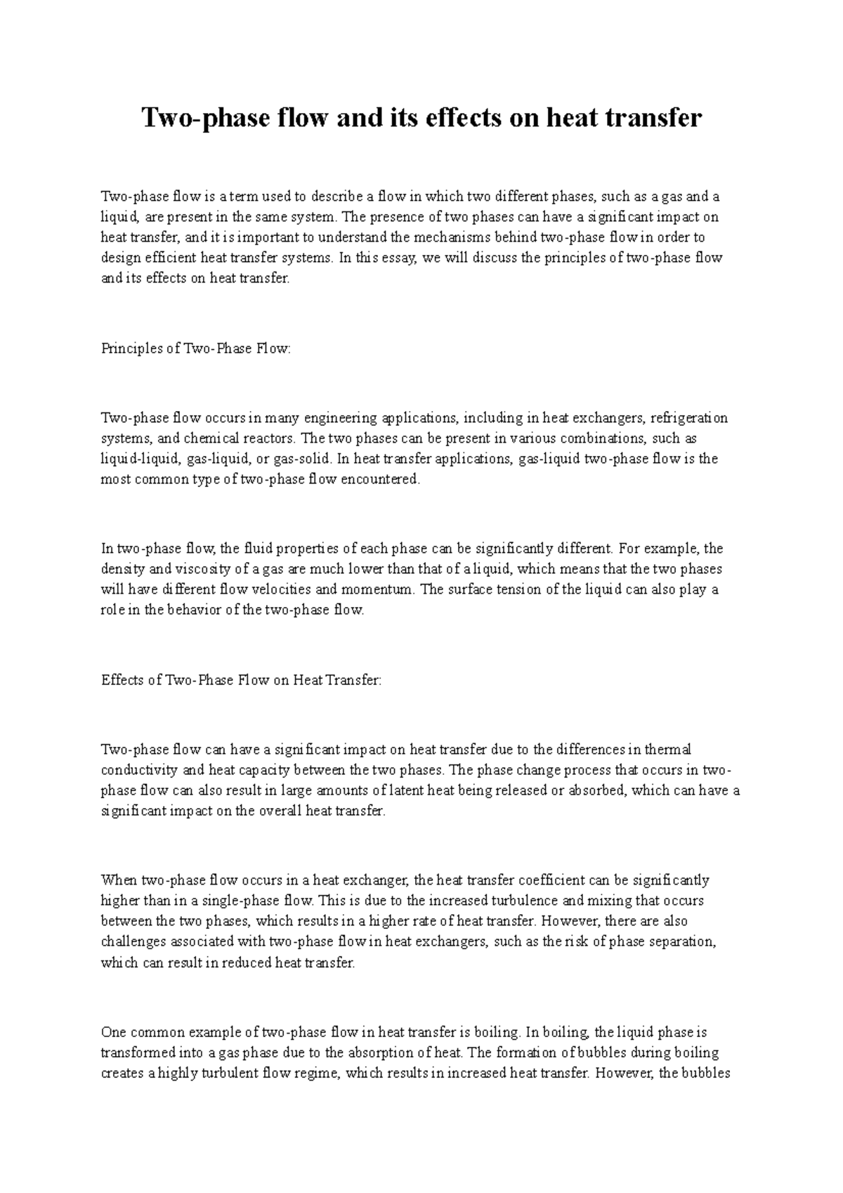 Two-phase flow and its effects on heat transfer - The presence of two ...