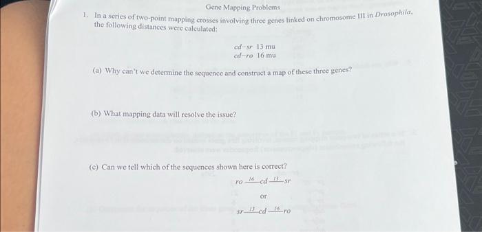 Solved Gene Mapping Problems In a series of two-point | Chegg.com