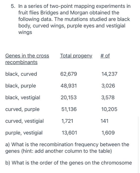 Solved 5. In a series of two-point mapping experiments in | Chegg.com