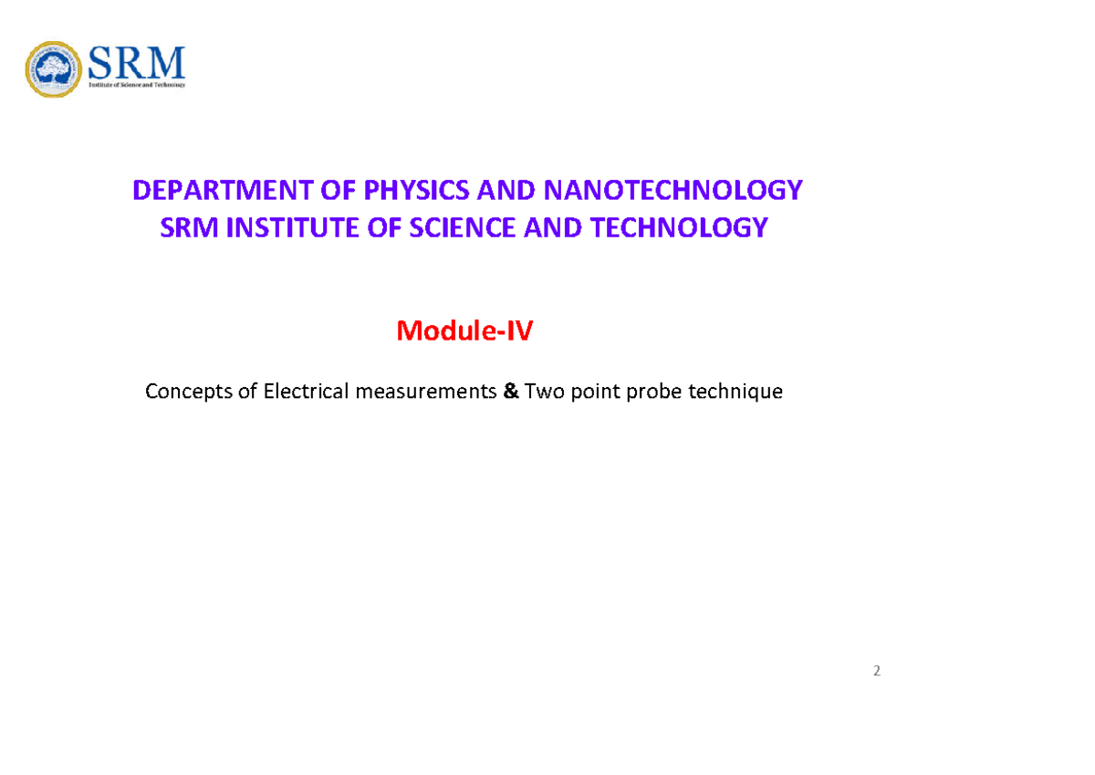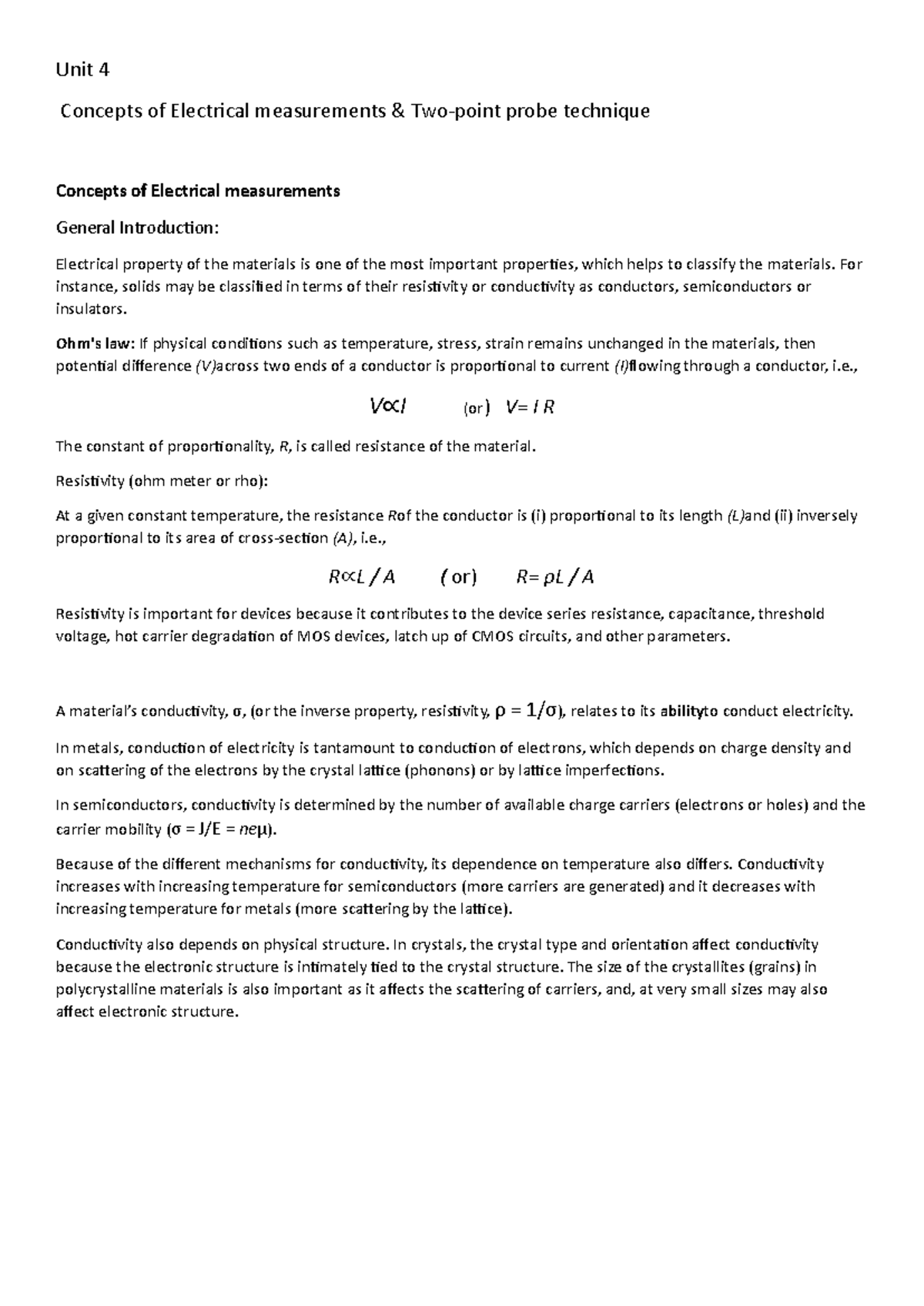 Electrical Measurements: Two Point Probe Technique - 18PYB103J - Studocu