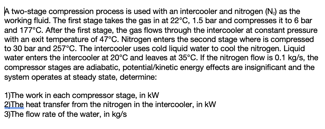 Solved A two stage compressor having an interstage cooler | Chegg.com