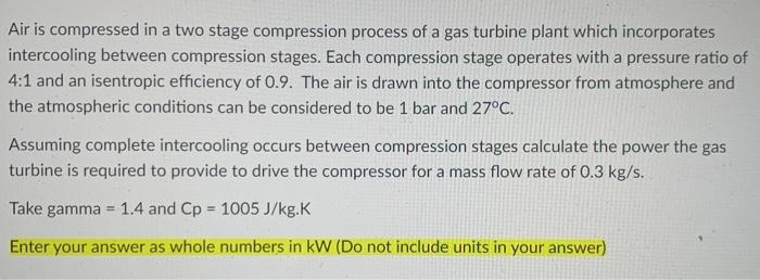 Solved (1.) A two-stage air compressor used in a gas-turbine | Chegg.com