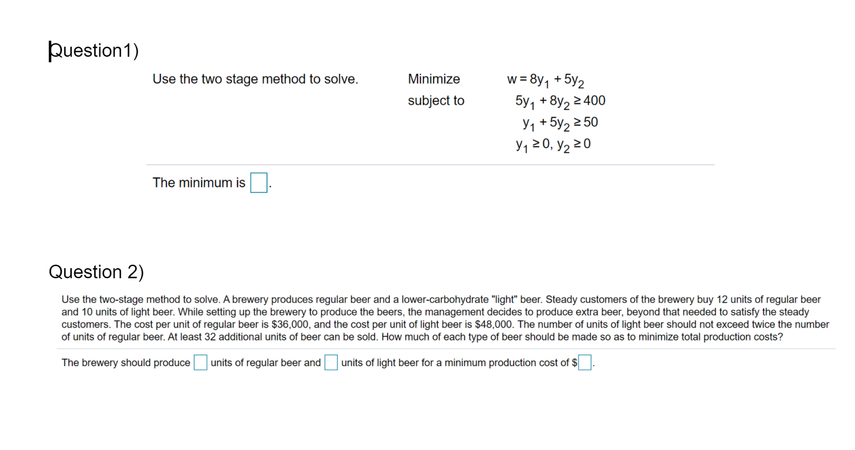 Solved Use the two-stage method to solve the problem below. | Chegg.com