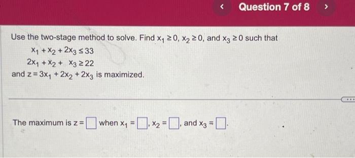 Solved Use the two-stage method to solve. Find x1≥0,x2≥0, | Chegg.com