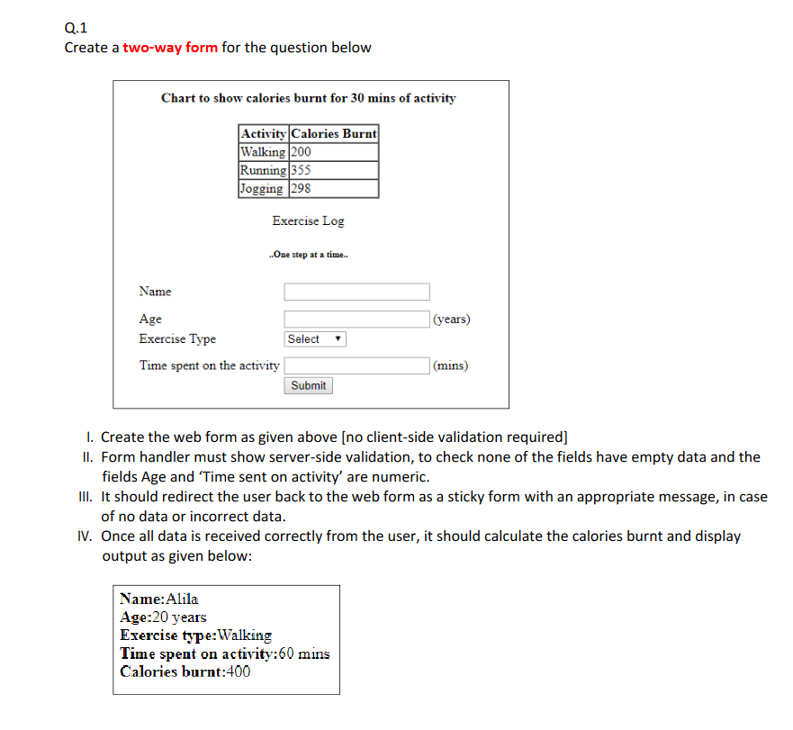 Solved Q.1 Create a two-way form for the question below | Chegg.com