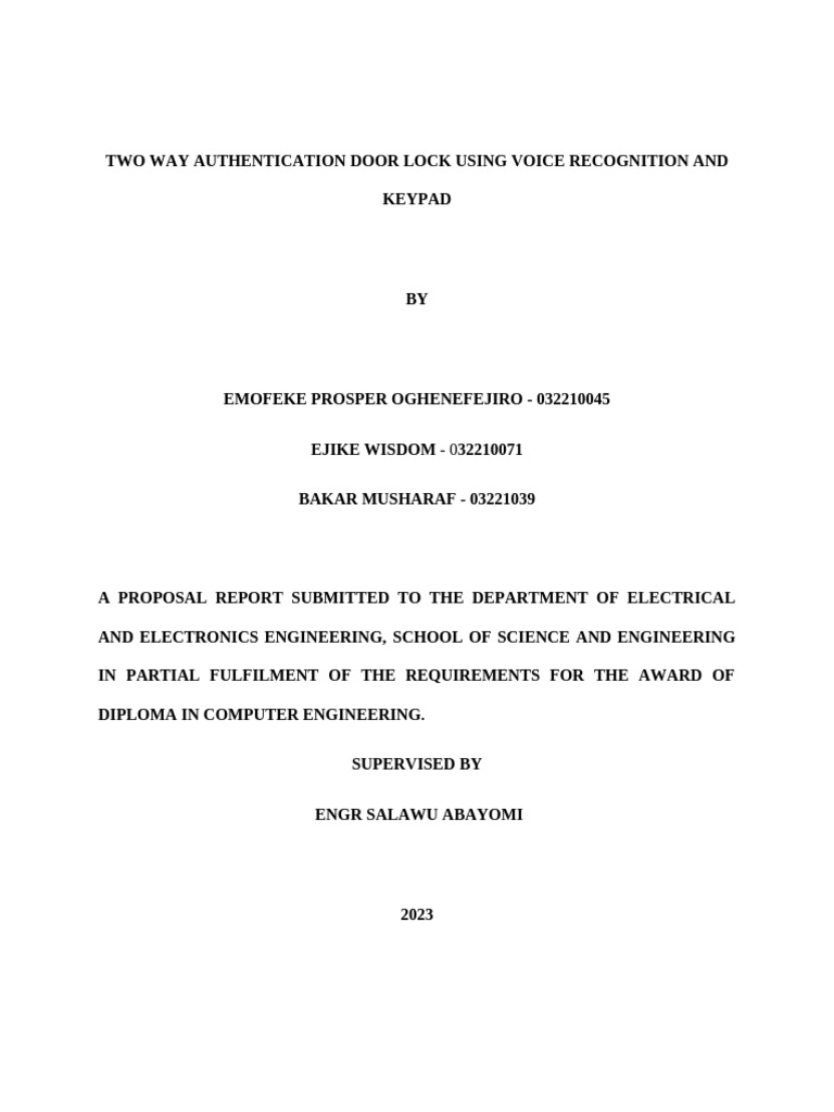 Two Way Authentication Door Lock Using Voice Recognition and Keypad | PDF