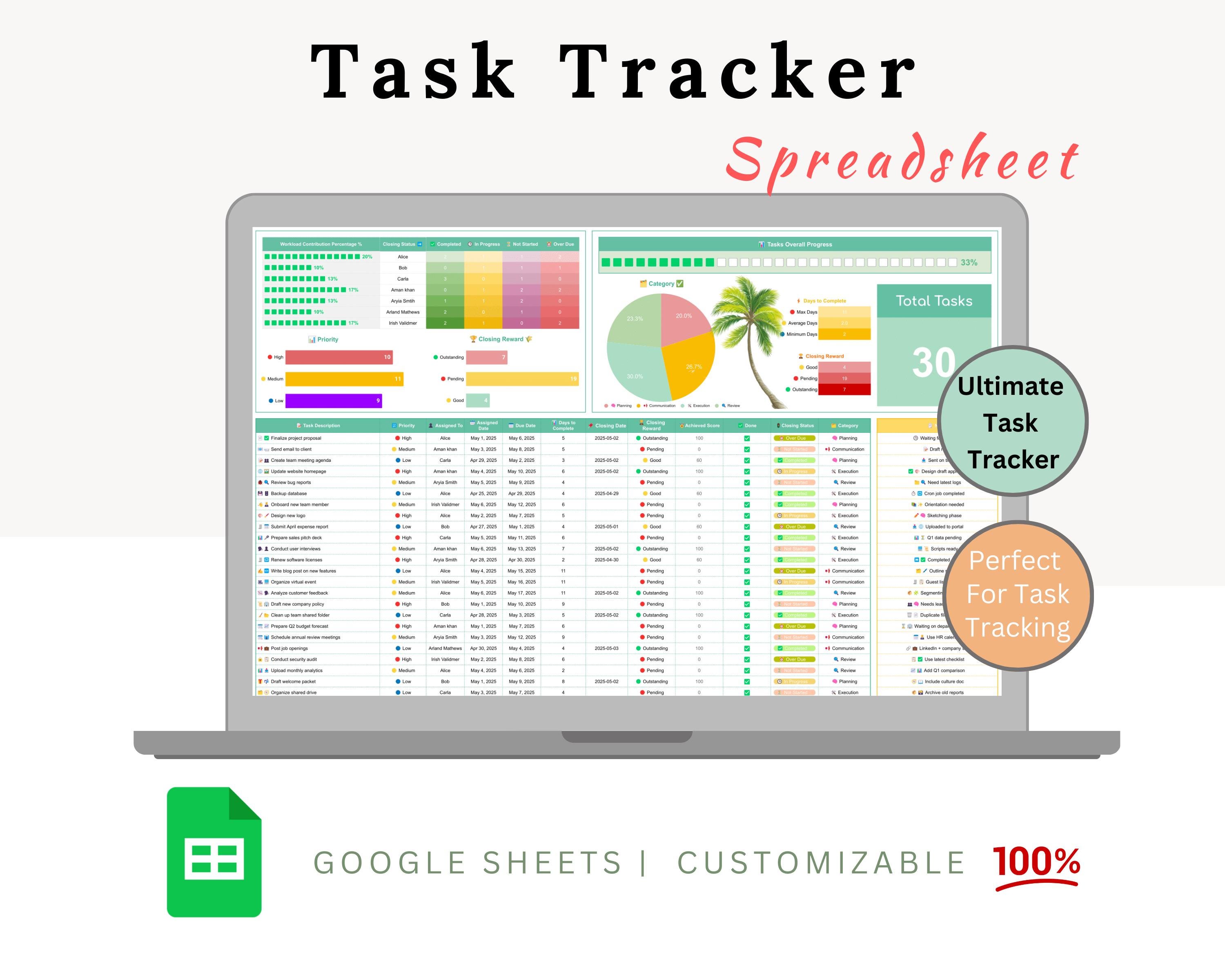 Task Tracker Google Sheets Template, Team Project Management, Task to ...