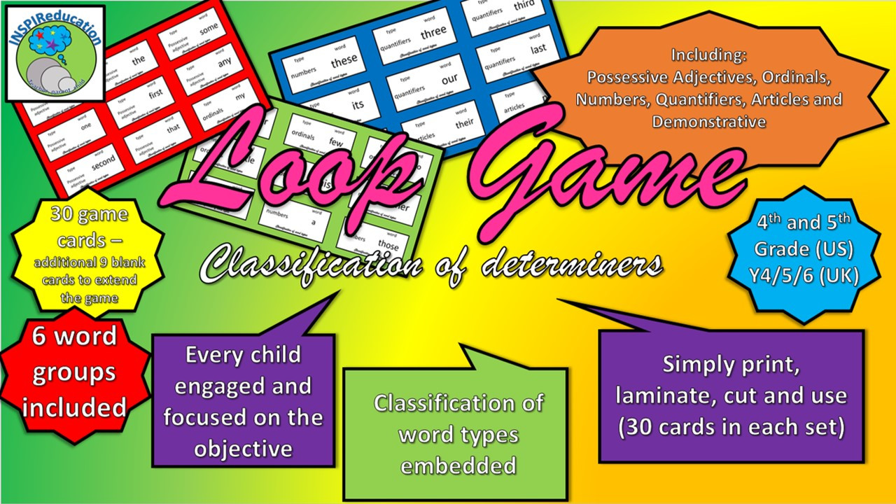Word Classification - Determiners: Loop Game - "I have...Who has..?" 30 ...