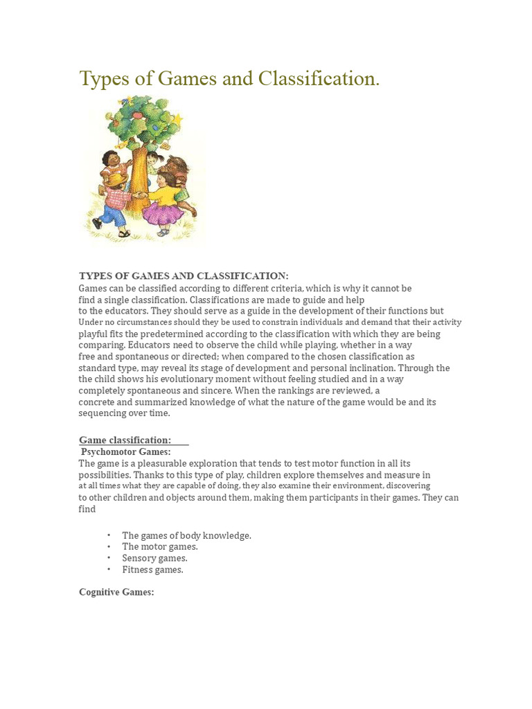 Types and Classifications of Games | PDF | Cognition | Psychological ...
