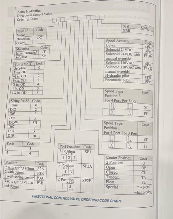 Solved Use Directional Control Valve Ordering Code Chart and | Chegg.com