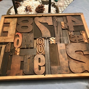 Antique Letterpress Letters and Numbers with Wood Box