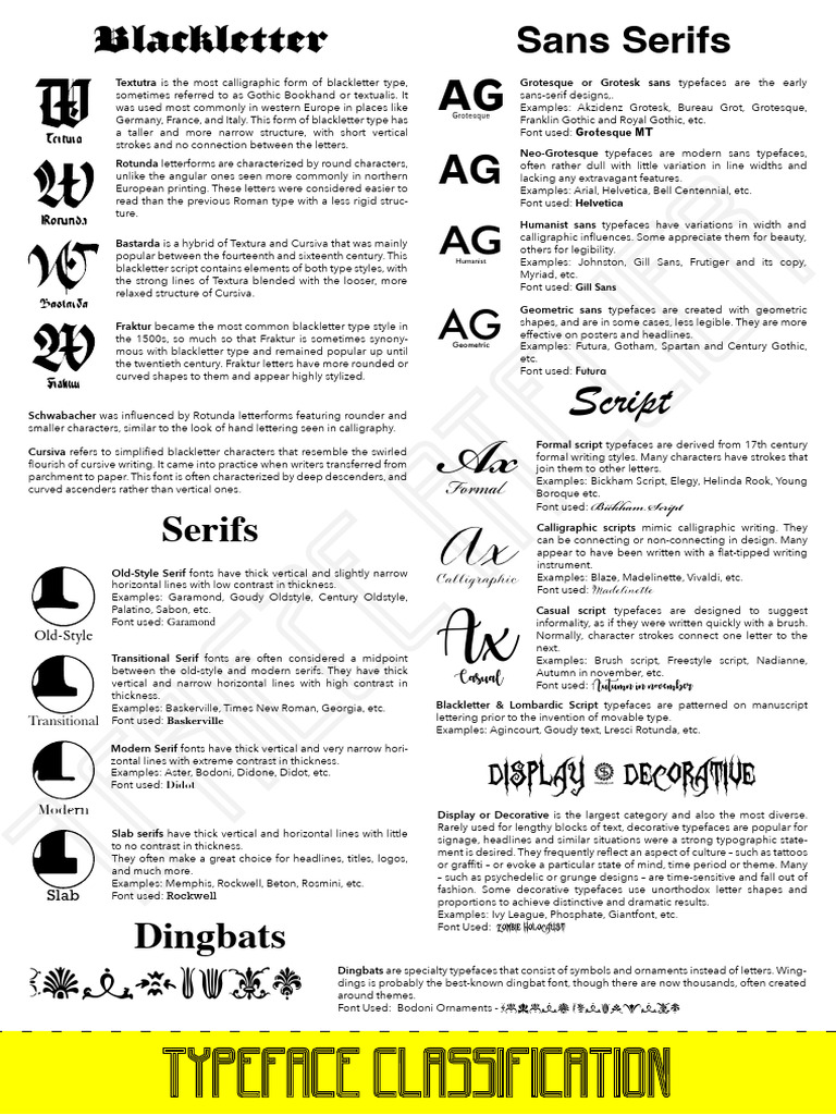 Typeface Classifications In Typography.