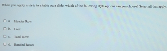 Solved: When you apply a style to a table on a slide, which of the ...