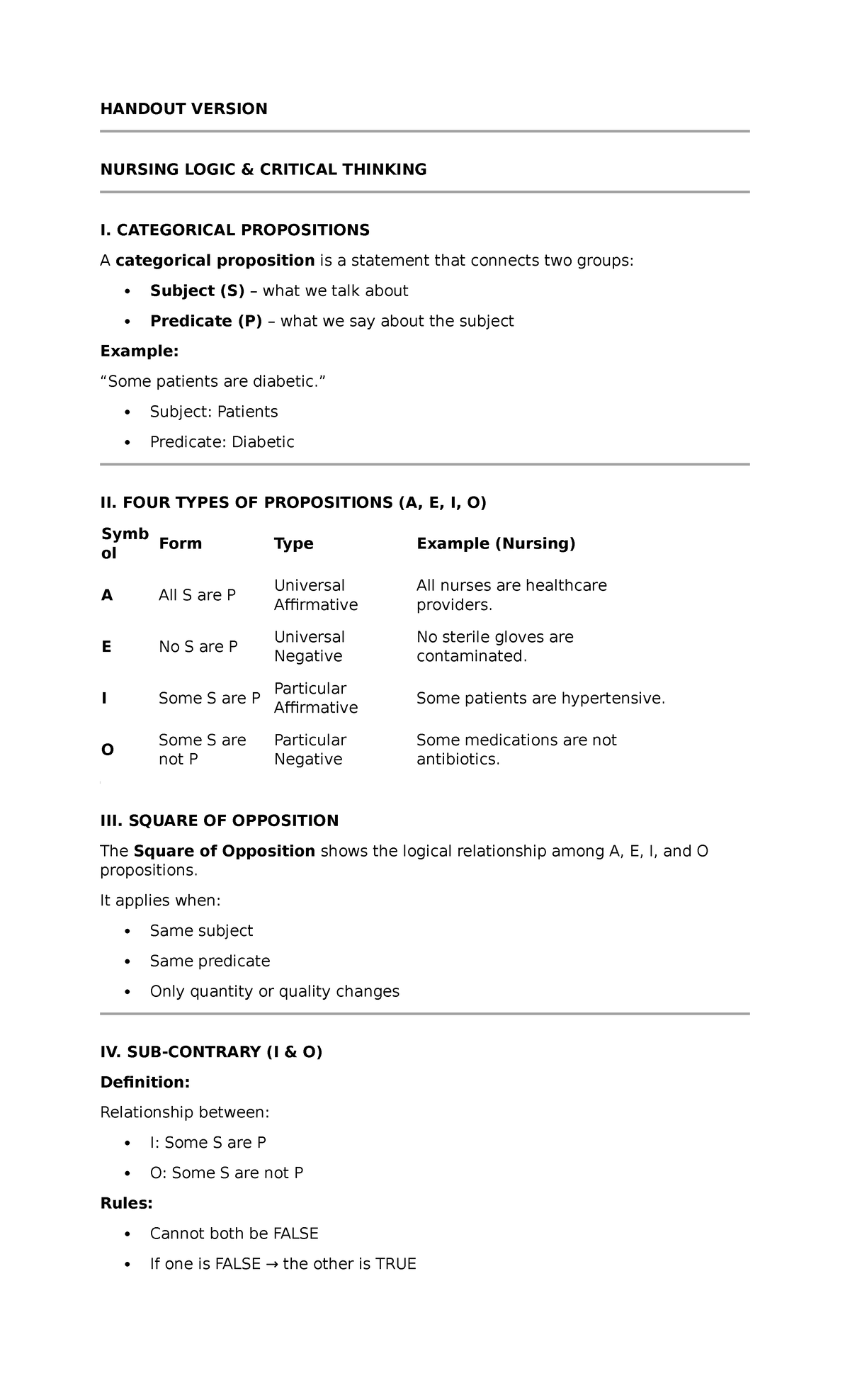 NUR 101: Lesson 10 - Categorical Propositions & Logic in Nursing - Studocu