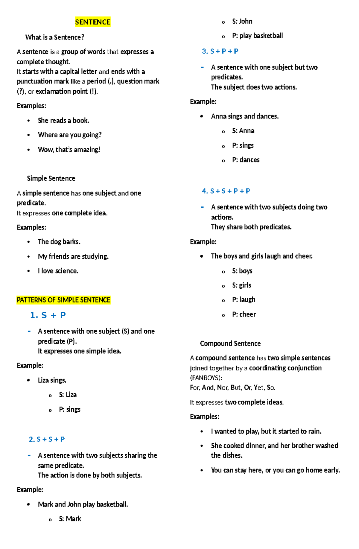 G7 Sentence Structure - Notes on Simple & Compound Sentences - Studocu