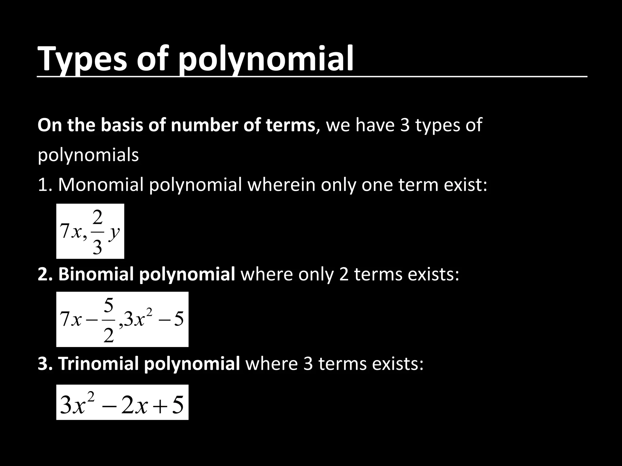 Types of Polynomials: Monomial, Binomial, Trinomial, Examples