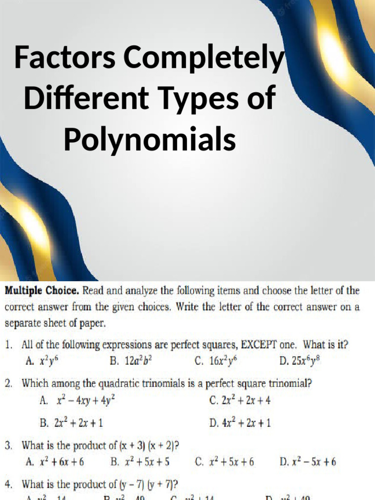 Factors Completely Different Types of Polynomials | PDF | Factorization ...