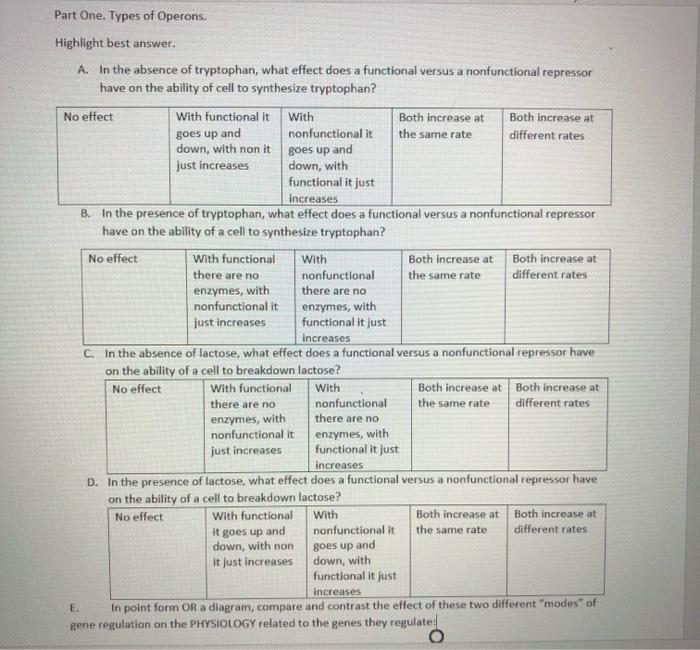 Solved Part One. Types of Operons. Highlight best answer. A. | Chegg.com