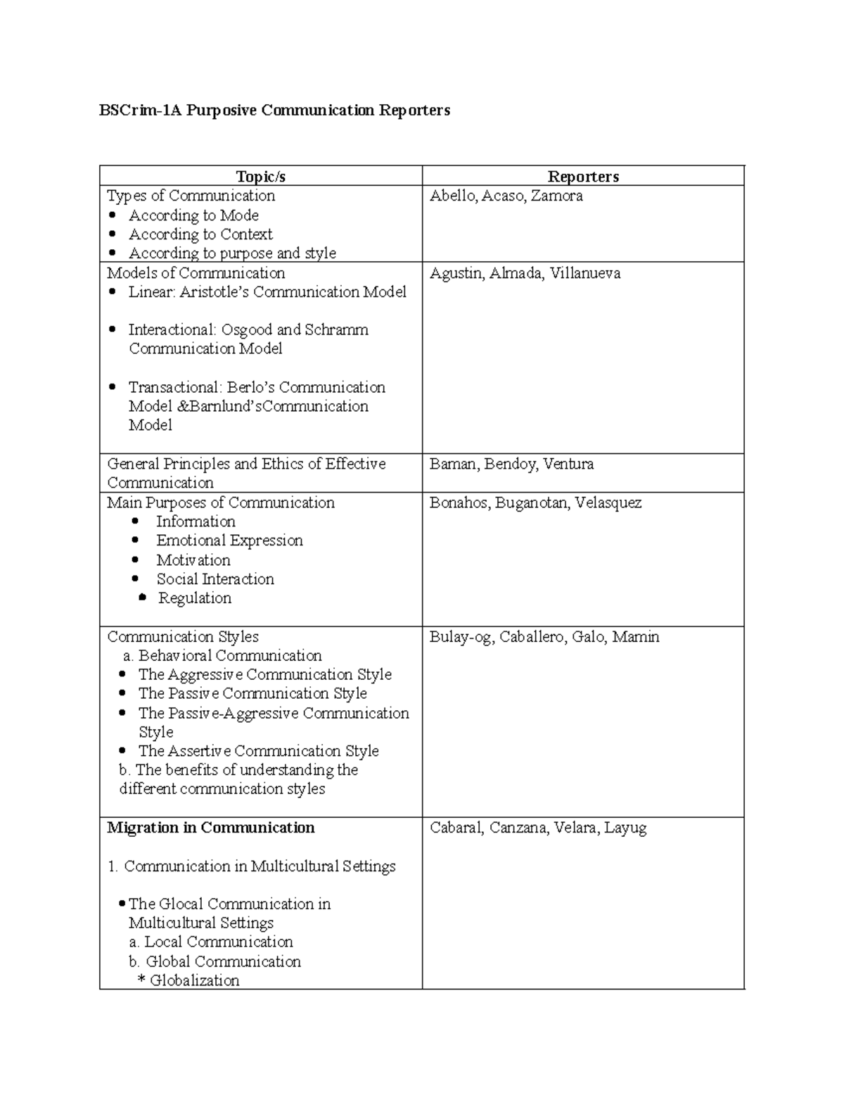 BSCrim 1A Reporters: Types and Models of Communication - Studocu