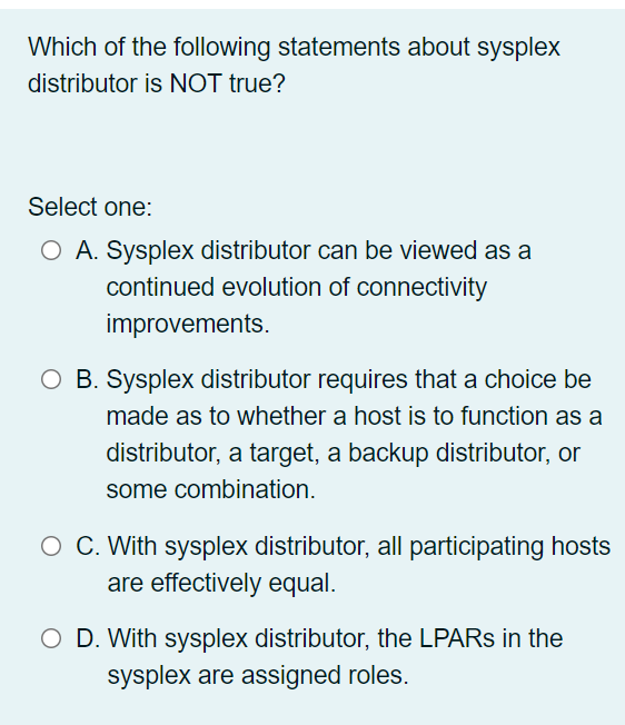 Solved Which of the following statements about sysplex | Chegg.com