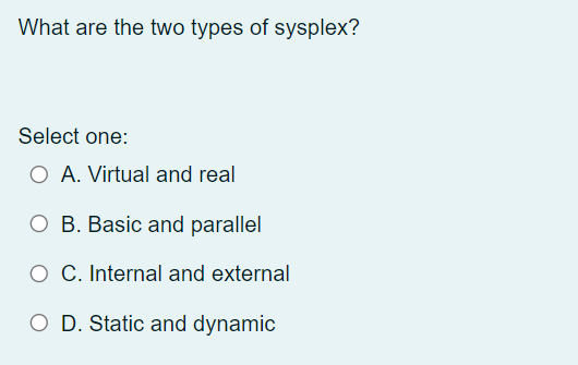 Solved What are the two types of sysplex? Select one: O A. | Chegg.com