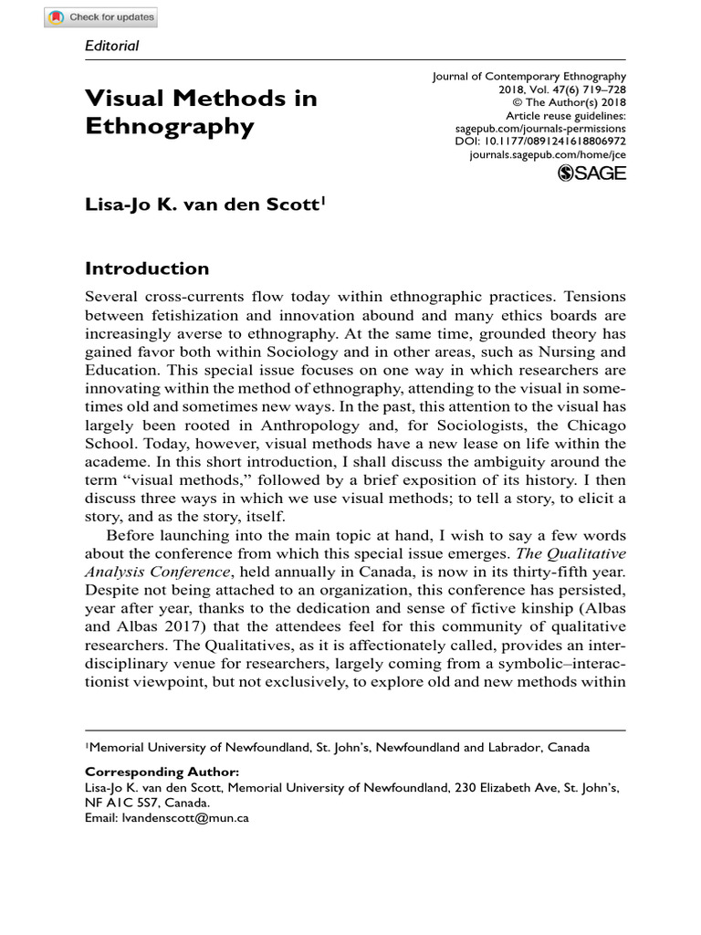 Visual Methods in Ethnography | PDF | Ethnography | Sociology