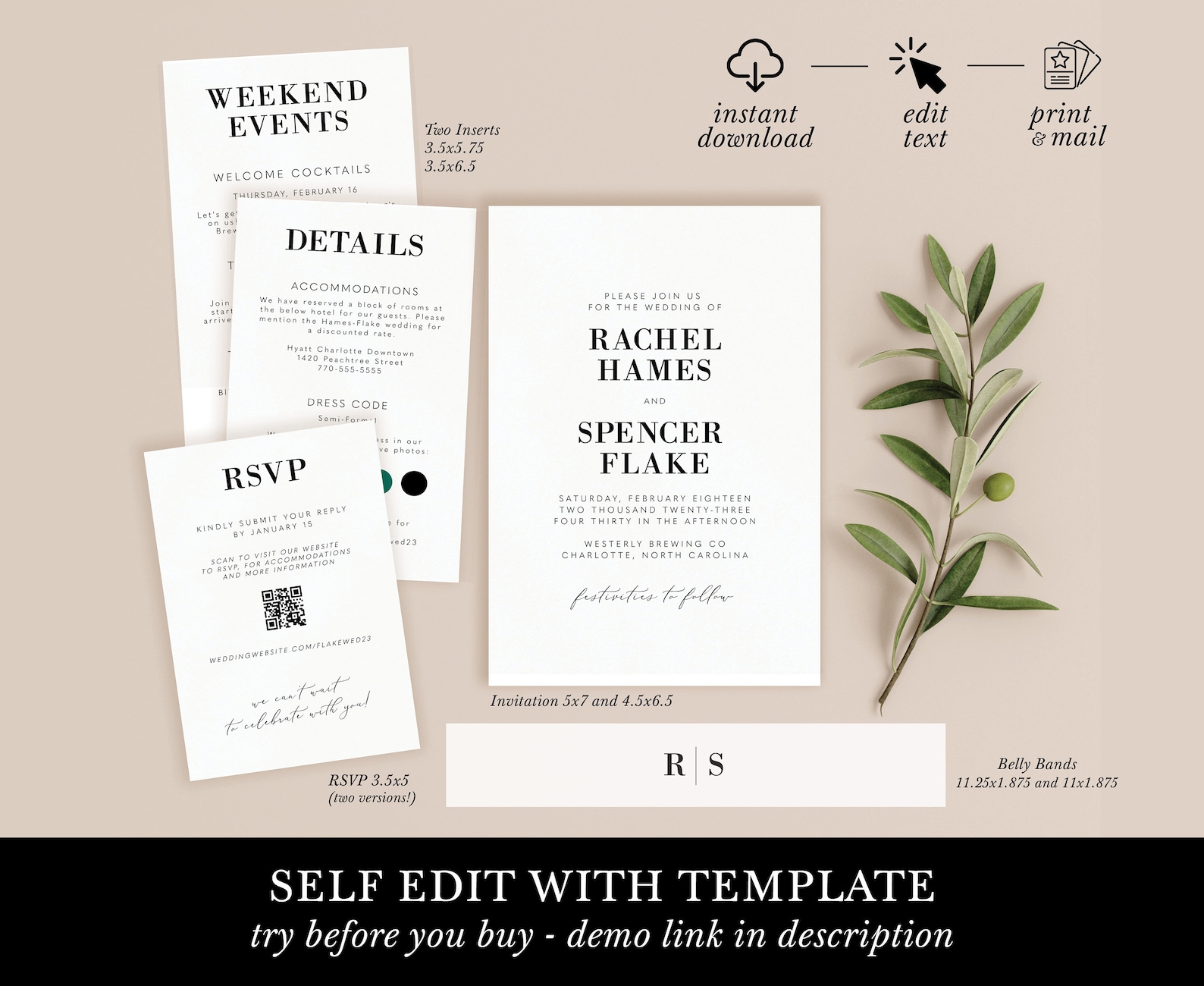 Modern Wedding Invitation Suite, Minimalist, Classy, 100% Editable ...