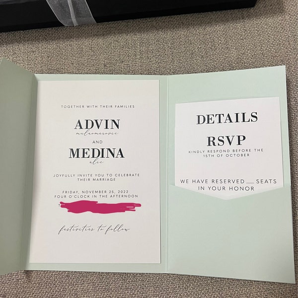 Modern Typography Wedding Invitation Template, Pocket Invite Set ...