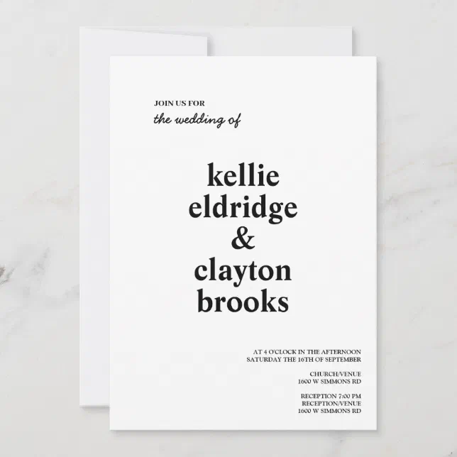 Simple Modern Typography Wedding Invitation | Zazzle