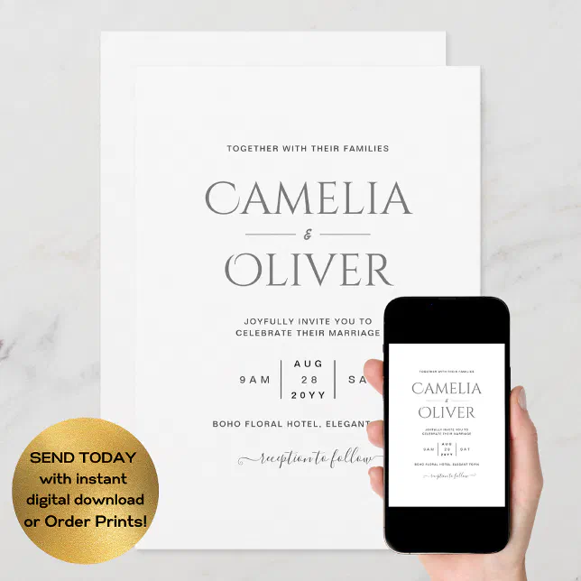 Elegant Typography Modern Wedding Invitation | Zazzle