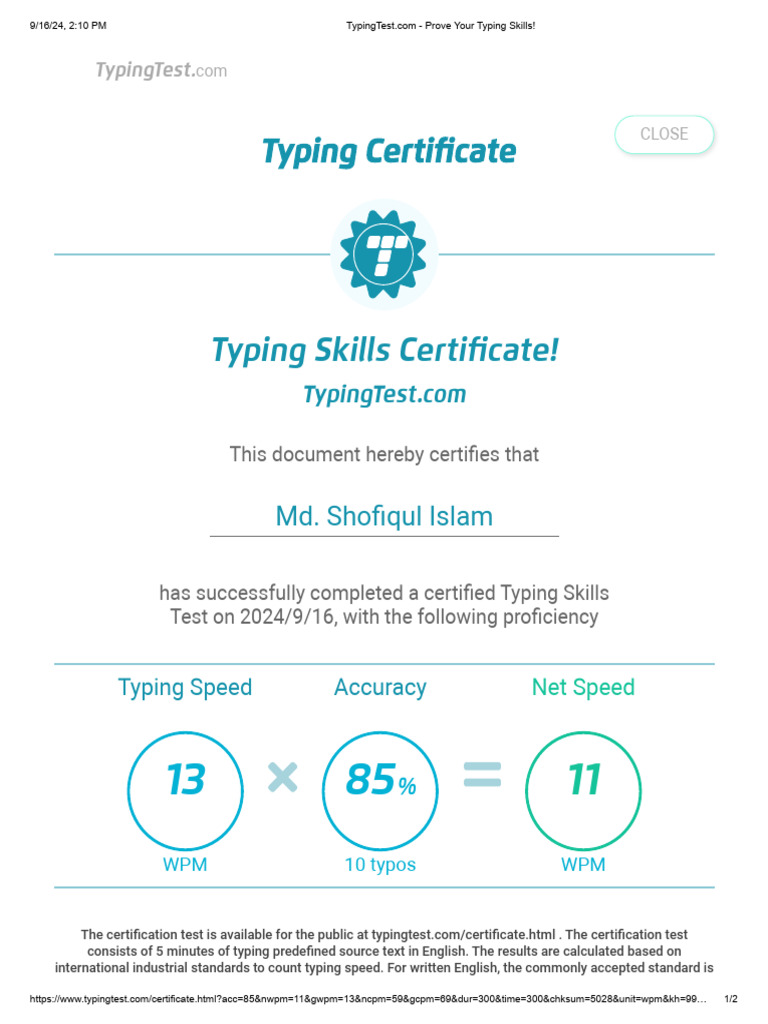 Typing Test Certificate | Typing Speed Certificate | Free Typing Test ...