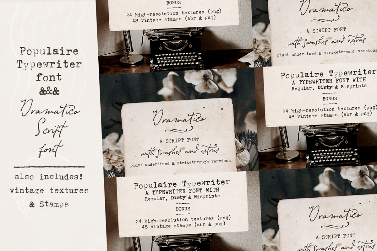 Typewriter and Script font pack Digital Font Download