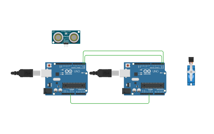 Circuit design COMM UART between 2 Arduinos - Tinkercad