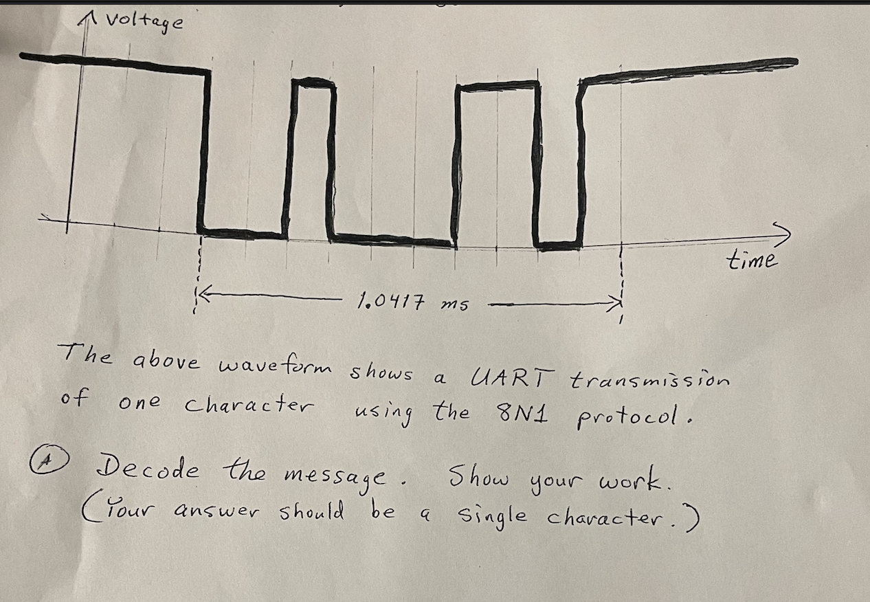 Solved The above waveform shows a UART transmission of one | Chegg.com